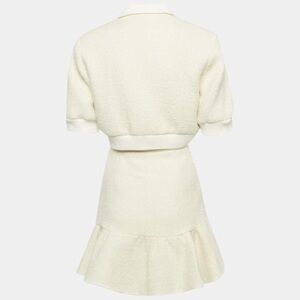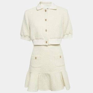 Sandro Set includes a cropped jacket and mini skirt in refined ecru tweed. Polished and feminine, it offers an elevated twist on classic talloring.