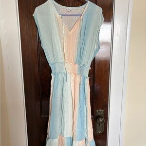 Chic lightweight dress by Rails. Soft linen blend material with pastel pink and blue accents. Perfect for casual outings, beach visits, vacations. Ideal for warm weather, could even be used as a swim coverup.