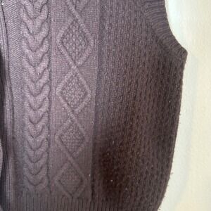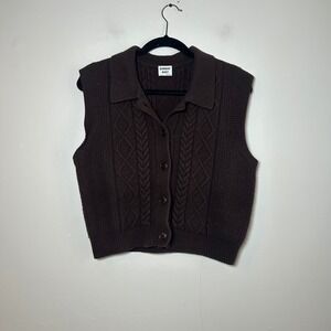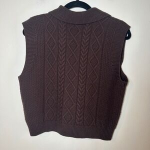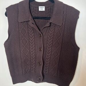 Sunday Best Aritzia Brown Merino Wool Cable Knit Front Polo Sweater Vest Size L