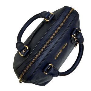Rich navy color paired with gold-tone hardware and iconic MK logo charm gives a timeless, sophisticated look perfect for everyday use or dressy occasions.