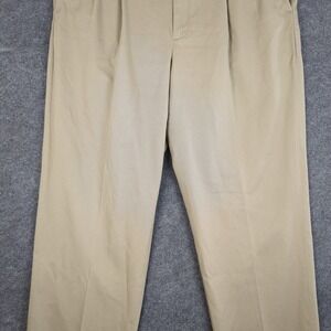L.L. Bean Mens Khaki Double Pleated Chino Pants 100% Cotton Tan Size 37