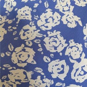 Charming dress with a floral design. Sleeveless with boat neck, bias cut and darts at bust for a good fit. Godets at the bottom give it lovely fullness. Fully lined.