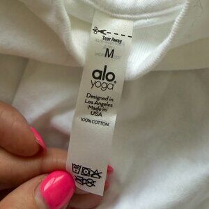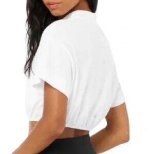 ALO Kick It Mock Neck Crop Tee in White - Size Medium