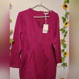 Step out in style with this elegant long sleeve dress in a vibrant pink hue. Perfect for any occasion, this dress offers both comfort and sophistication.