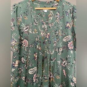 J. Jill Sage Green Floral Short Sleeve Pin Tuck Pullover Midi Dress Size M