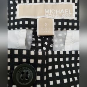 Michael Kors black and white ankle pants with a small gingham print, made from a comfortable blend fabric with stretch.