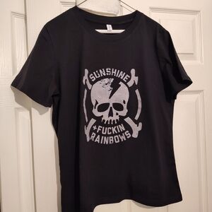 📌RESERVED📌Sunshine Fxckin Rainbows Skull Graphic Tee Black Punk Rock Gym Sh