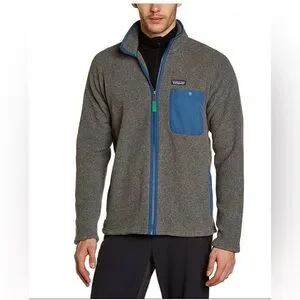 Vintage Patagonia Men's Karstens Synchilla full-zip fleece jacket in gray with blue accents. Very good used condition, looks basically brand new.
