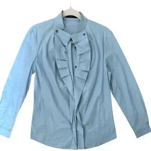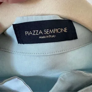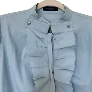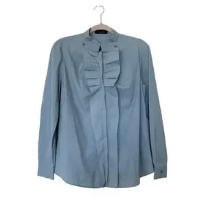 Piazza Sempione Light Blue Ruffle Button Down Shirt Blouse Made in Italy Sz M/8