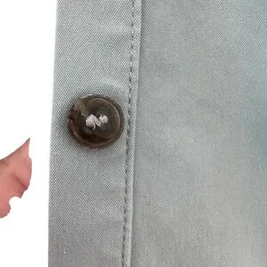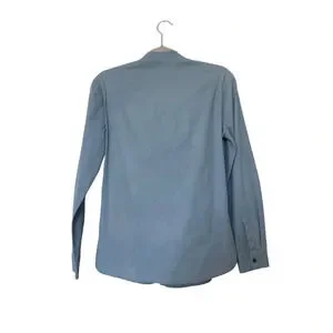 ** A few of the front buttons are chipped (would not affect wear or aesthetic because they are hidden anyway). Mismatched buttons at cuffs. One has been replaced so they are not identical. A few scratches on the shirt itself, but would probably go away once washed. **