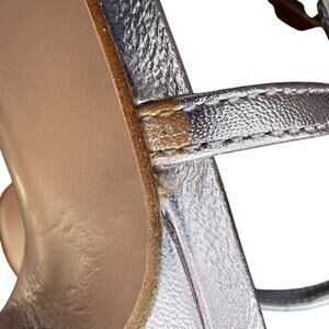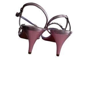 Kate Spade Makenna strappy sandals in a soft pink tone with a subtle metallic finish and rhinestone embellishments. Elegant, feminine silhouette that works beautifully for events, weddings, or dressy summer wear.