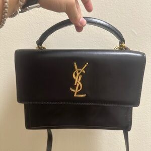 Saint Laurent YSL Sunset Leather Black Gold Hardware Crossbody Bag AUTHENTIC