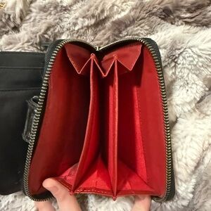 Sleek black leather CL wallet. Features a stylish gold chain strap. Elegant bow accent on the front. Offers are welcomed! 🥰❤️🥰