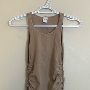 Aritzia TNA Ruched Tank Mini Dress Tan Size S Casual