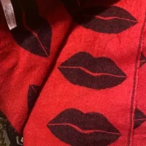 Stylish scarf with bold lip pattern. Perfect for a chic look.