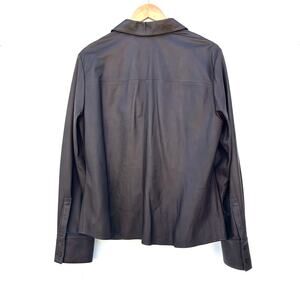 Lafayette 148 Brown Long Sleeve Lambskin Leather Ruched Top Shirt 14 Fitted