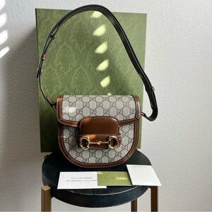 NEW with tag Gucci GG Supreme Horsebit 1955 Mini Rounded Shoulder Bag