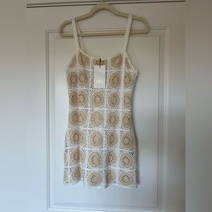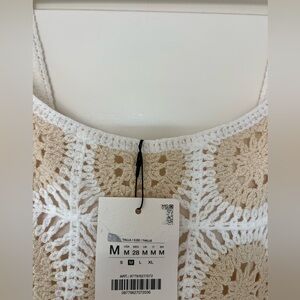 Zara NWT Crochet Mini Dress in White and Tan size M