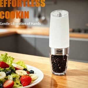 Enhance your kitchen with this sleek electric pepper grinder. Featuring a stylish black and silver design, it includes a blue LED light for precision seasoning. Perfect for any culinary enthusiast.