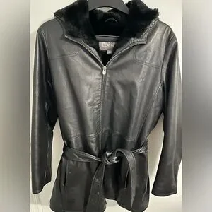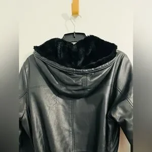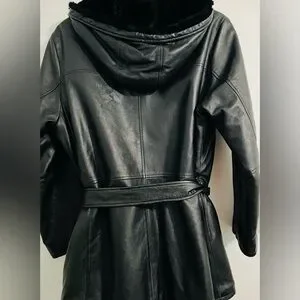 Vtg Wilson’s Leather Black 3/4 Length Coat Belted Soft Lining Warm Hooded Sz XL