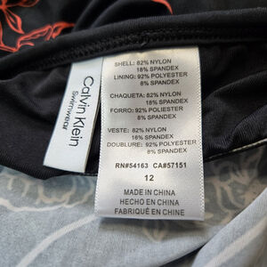 Calvin Klein Black Coral Floral Halter Blouson One Piece Swimsuit 12 NWT UPF