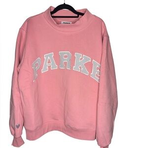 NWT PARKE Valentine’s Day varsity mock neck sweatshirt in blush/lavender in l/xl