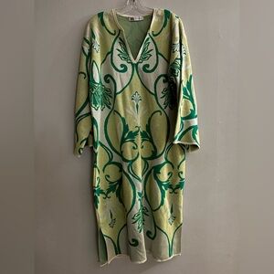 Jacquard Knit Boho Floral Hippie Tunic Dress Oversized Green TikTok Kaftan L-XL