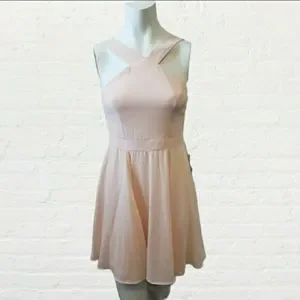 Lulus NWT small peach forevermore halter skater fit and flare mini dress