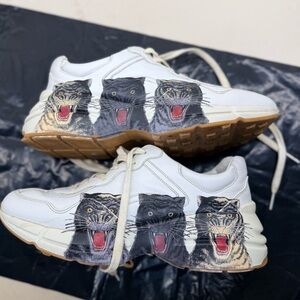 Gucci Rhyton Great White Tiger Leather Animal Print Logo Men's Sneakers Size 8