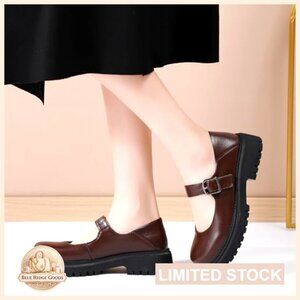 Platform Mary Jane Shoes Chunky Round Toe Non-Slip Comfort Leather Casual Dressy