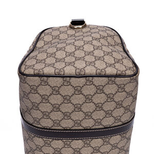 Gucci Handbag GG Supreme Boston in Dark Brown/Beige Supreme Coated Canvas and Champagne Gold hardware. The product is in Excellent Condition (A).