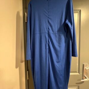 This chic long sleeve blue dress features a stylish striped detail, perfect for any occasion. Its sleek design and vibrant color make it a standout piece in any wardrobe.