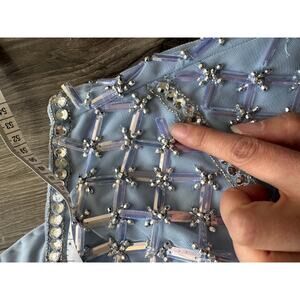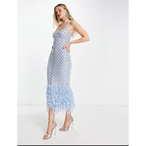 NWT ASOS DESIGN Light Blue Beaded Feather Hem Dress Size 14 Glam Formal Gown