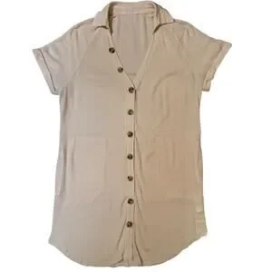NWT Cupshe Beige Button Down Shirt Dress Cover-Up Size Small