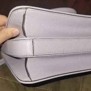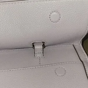 Chic lavender pebbled satchel with gold accents. Features top handles and an adjustable strap. Magnetic closure. 3 compartments plus an outside pocket. Perfect for stylish outings. 12.5" x 10" x 4". NWOT.