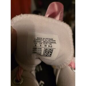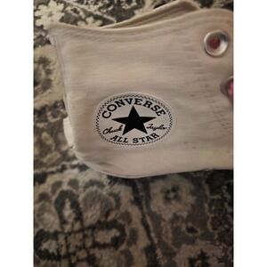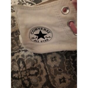 The Converse Chuck Taylor Tennis Shoes in women's size 8 are stylish athletic sneakers designed for tennis performance. The classic white color with pink shoelaces adds a feminine touch to these iconic Converse Chuck Taylor model shoes. Perfect for women looking for both style and comfort in their athletic footwear, these trainers are a versatile choice for various activities.