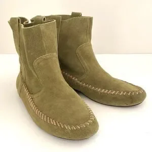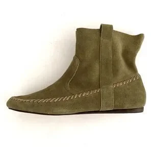Anthropologie Latigo Olive Green Suede Moccasin Boho Bootie sz 9.5 Cottagecore