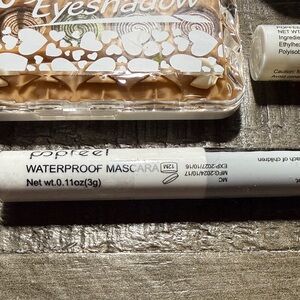 This set includes a variety of beauty products such as eyeshadow pallet, eyelashes, lip balm, black waterproof mascara, shining eyeshadow pallet and pink accessories. Perfect for enhancing your makeup collection. All new, Never used.