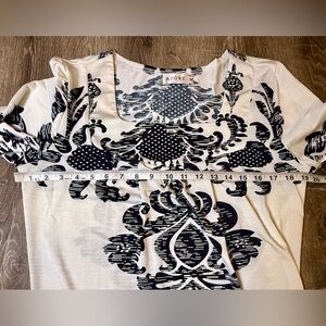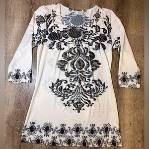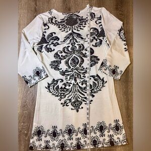 ADORE, Black and White Mod Artsy Damask Shift Mini Dress, Size Medium