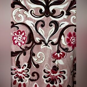 This long sleeve top with a vibrant floral pattern in tones of pink, neutrals, and red is perfect for adding a pop of color to your wardrobe. This versatile blouse is very soft, perfect for your next outing. This is a Chico’s size 3, or XL.