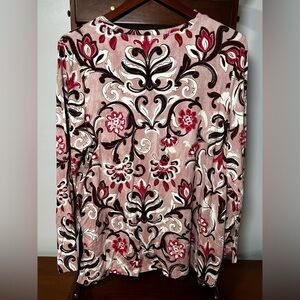 Chico's Women's 3/ XL Long Sleeve Top Pink Red Neutral Floral Shirt