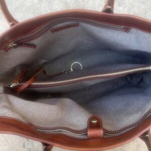 Dooney & Bourke Cognac Texture Leather Large Double Handle Tote Bag. Interior Zipper bag in the middle and zipper pocket on side. Two front small pockets with snaps.