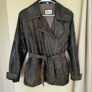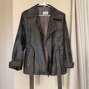 Brown distressed faux leather jacket