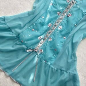 (tags: cute summer spring fairy fairycore whimsical embroidered flowers lace detail bows princess vintage y2k 2000s pastel pink aqua blue rare lingerie cottagecore coquette )