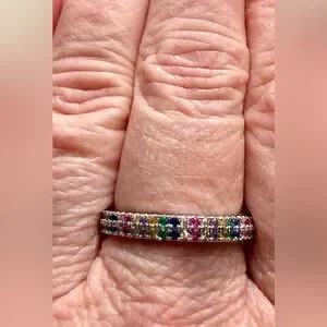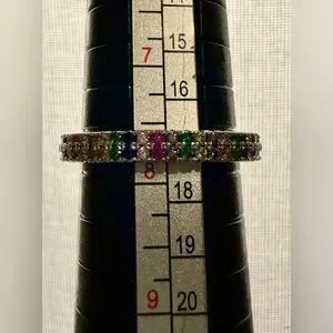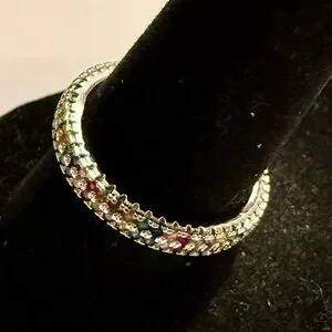 Ring - size 7.75 -New - dainty multi-color rhinestones silver tone band. BOGO ⬇️