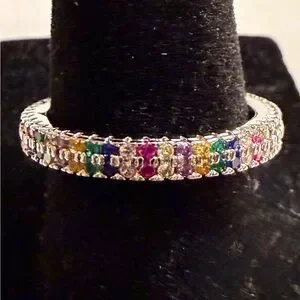 Ring - size 7.75 - dainty multi-colored rhinestones on silver tone band. New! Never worn. Smoke free home.