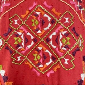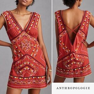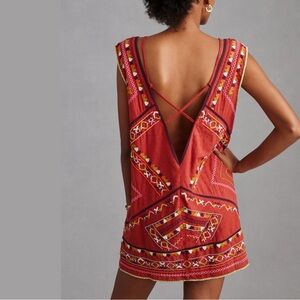 Anthropologie Embroidered Statement Mini Dress Light Red Large NWT