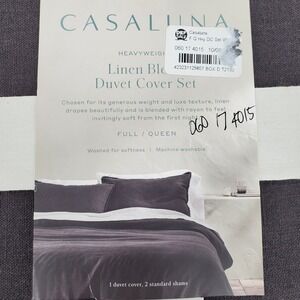 Casaluna Heavyweight Linen Blend Duvet Cover Set Full Queen Dark Gray 3pc New