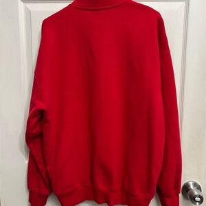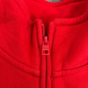 Sweatshirt red quater zip-up . Comfortable and stylish. Ideal for casual wear.