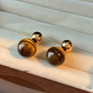 These elegant earrings feature a stunning combination of gold and brown tones, perfect for adding a touch of sophistication to any outfit.